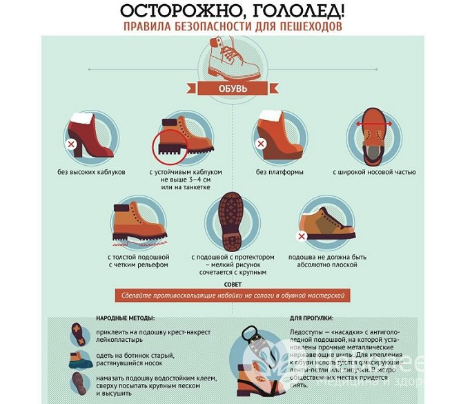 Падения часто происходят в гололед из-за неправильно подобранной обувиЖенщины чаще повреждают копчик, чем мужчины ввиду ношения неудобной обуви, обуви на каблуке в период гололеда.